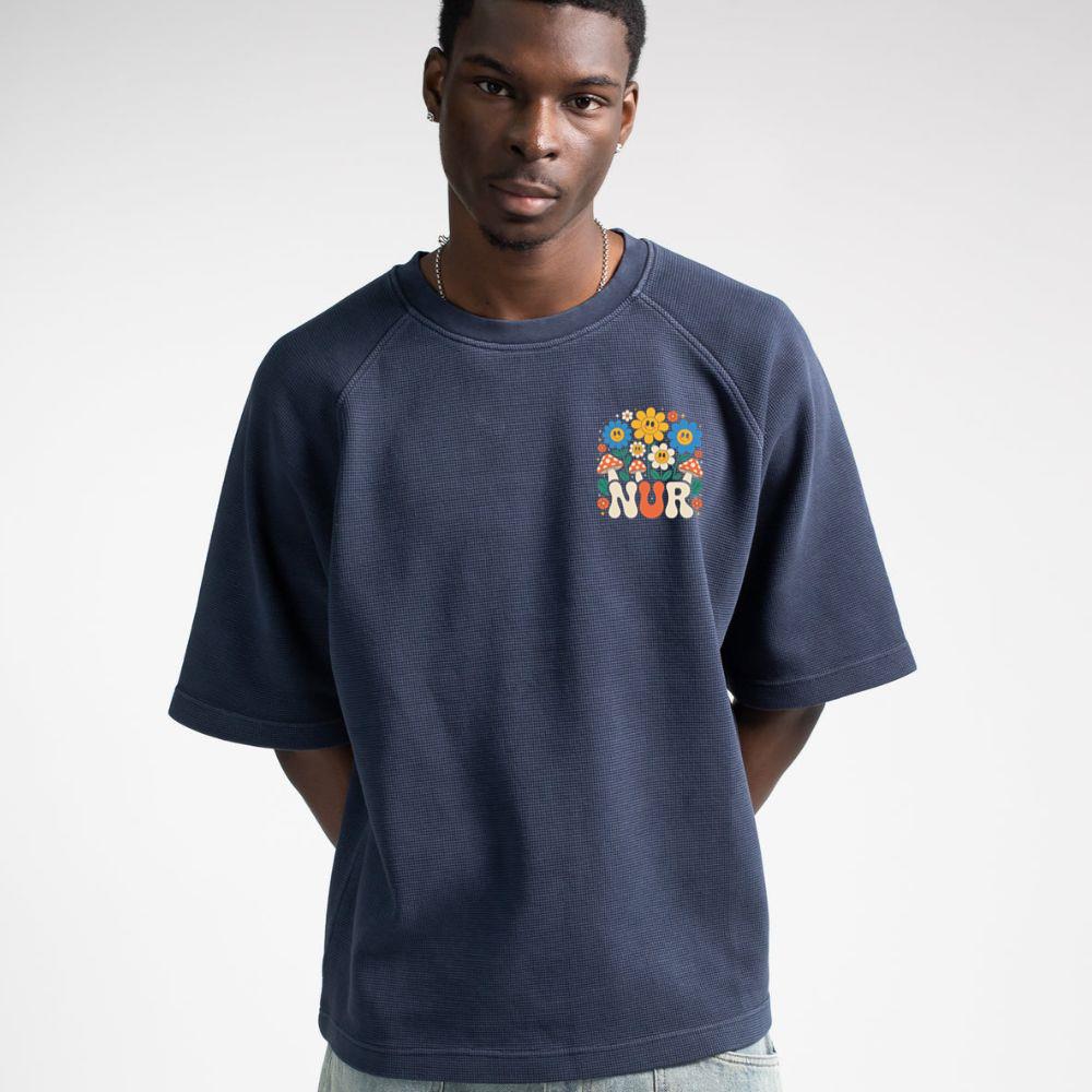 350 GSM heavyweight waffle-combed cotton, offering a perfect balance between softness, structure, and long-lasting wear.